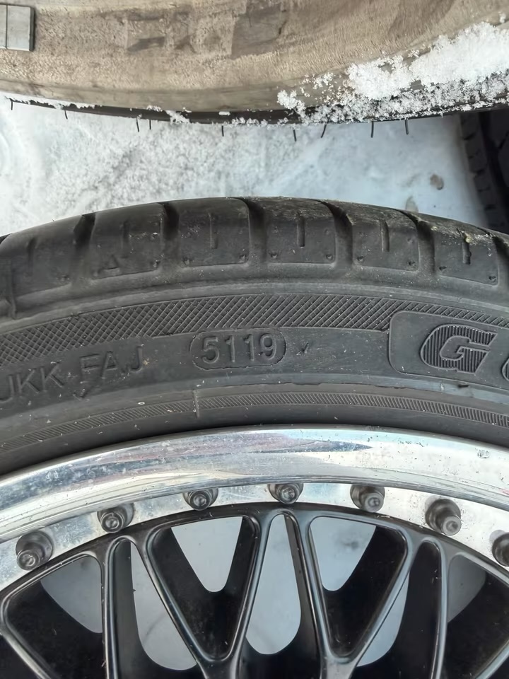 Les pneus ont encore un profil mais sont de DOT5119 et devraient à mon avis être renouvelés en raison de l’âge.