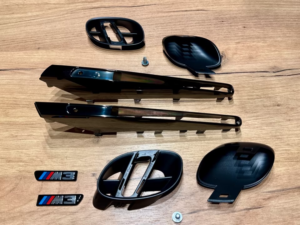 Original BMW M3 E92 black chrome side gills, new in original packaging.