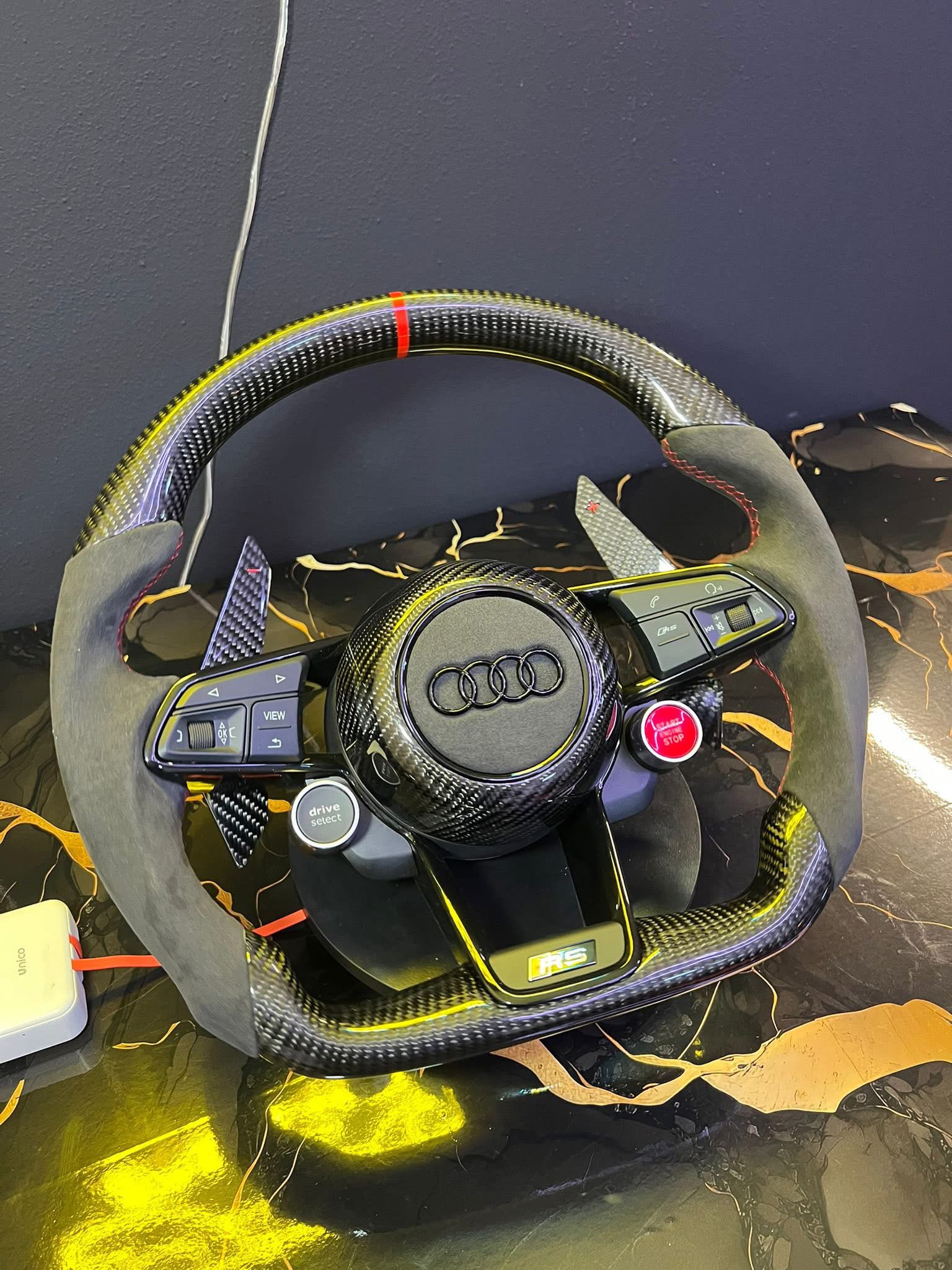 volant personnalisé en carbone et alcantara pour Audi A1, S1, A3, S3, RS3, A4, S4, RS4, A5, S5, RS5, A6, S6, RS6, A7, S7, RS7, A8, S8, R8, TTS, TTRS…