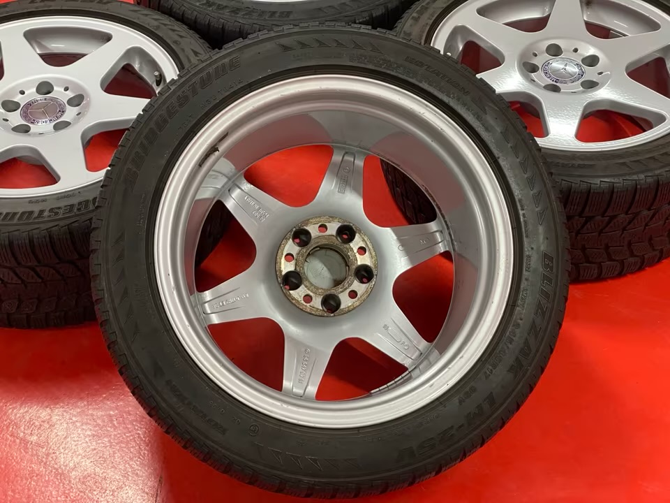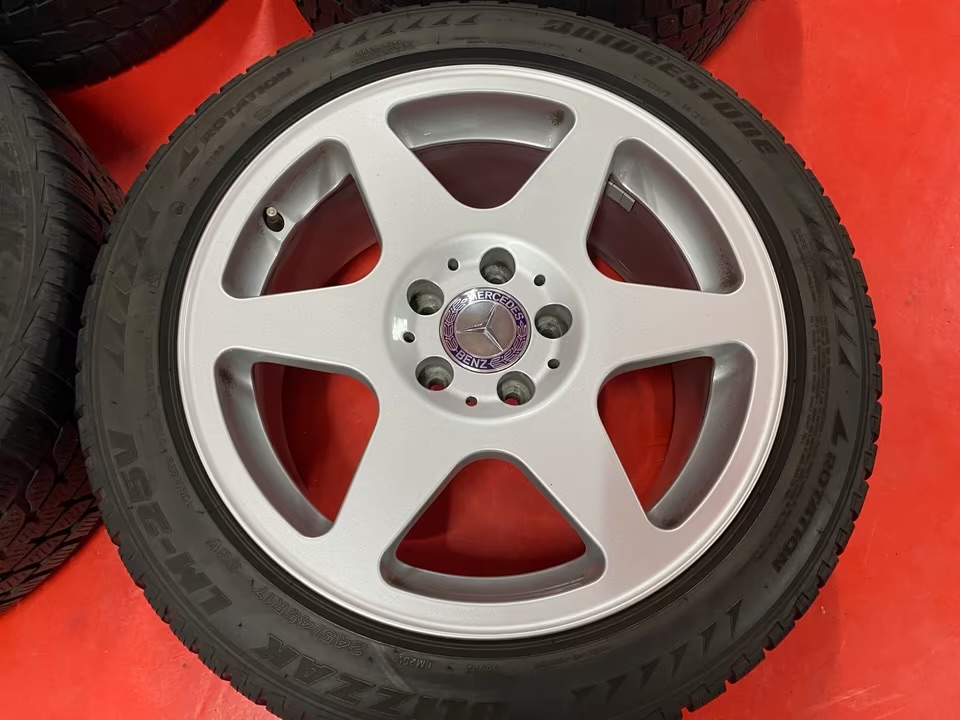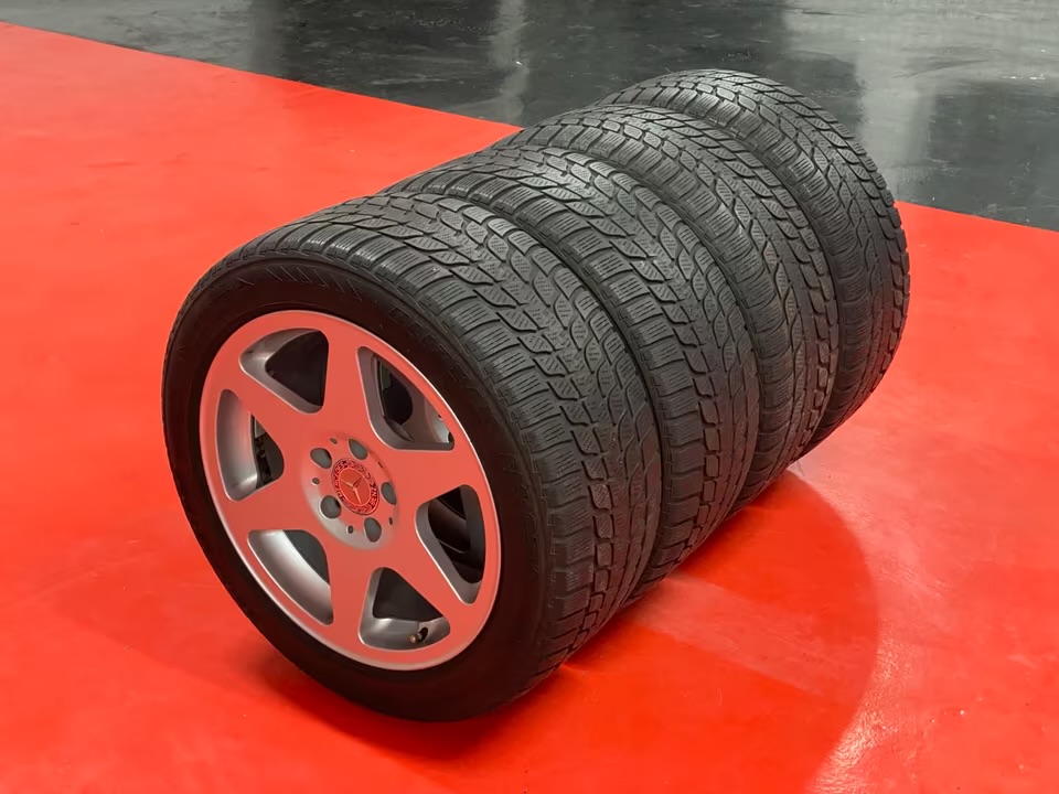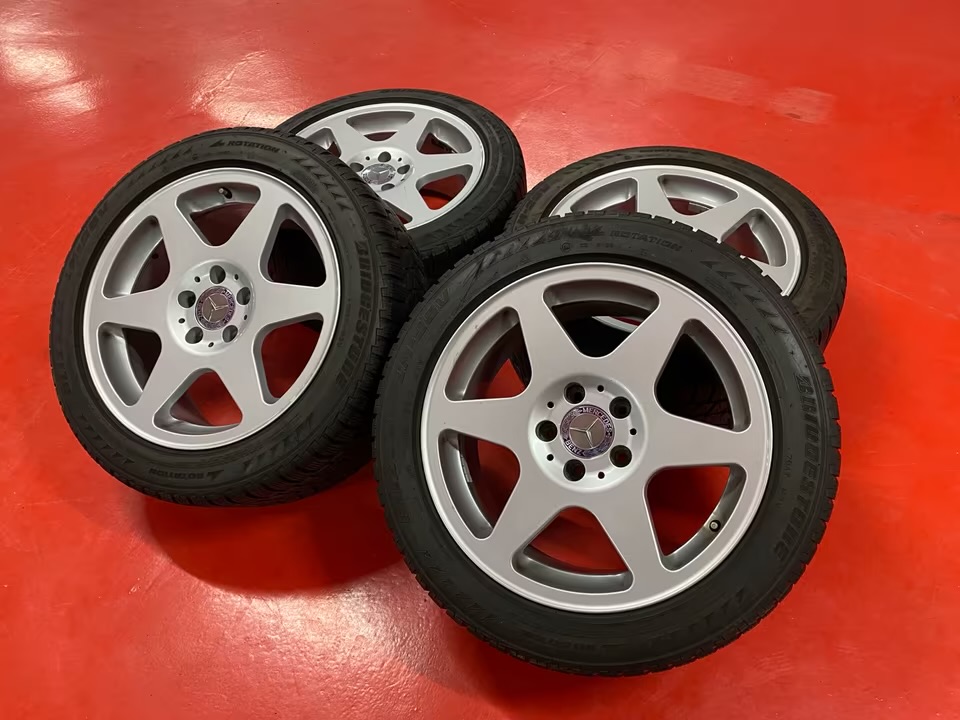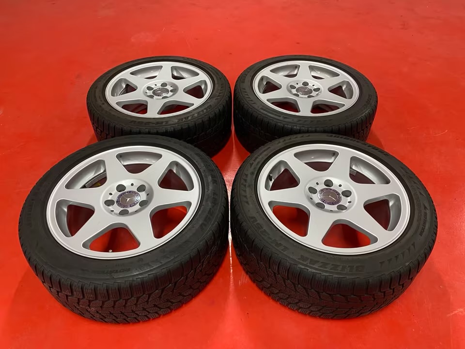 Four original Mercedes EVO wheels with tires.